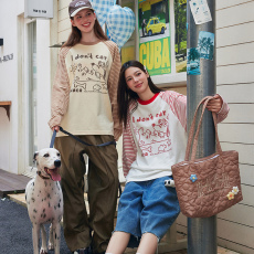 LAMLICKA小猫贴布口袋圆领卫衣女宽松慵懒风多巴胺长袖外套情侣装