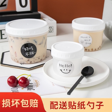 奶皮子酸奶包装盒加厚带盖塑料杯发酵奶酪一次性甜品慕斯纸杯商用