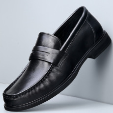 男士乐福鞋豆豆鞋一脚蹬懒人鞋休闲皮鞋头层牛皮柔软舒适