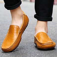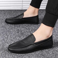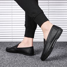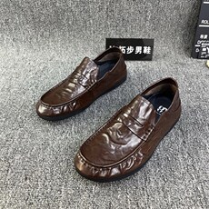2025欧洲站驾车豆豆鞋春款休闲商务懒人软底荔枝纹真皮乐福鞋男士