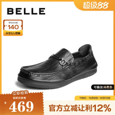 百丽打孔透气豆豆鞋男2025夏新牛皮一脚蹬懒人鞋休闲皮鞋A1890BM5