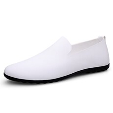 男鞋夏季透气镂空白色豆豆鞋懒人皮鞋软底软皮夏天大码46码休闲鞋