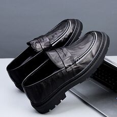 鞋子男春季休闲皮鞋真皮百搭豆豆鞋黑色懒人潮鞋一脚蹬乐福鞋增高