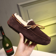 dwгugg皮毛一体豆豆鞋男加绒加厚秋冬季一脚蹬懒人平底休闲棉鞋