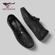 七匹狼真皮豆豆鞋男一脚蹬懒人鞋男士休闲驾车皮鞋春季黑色乐福鞋