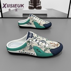 帆布鞋男鞋一脚蹬懒人鞋休闲板鞋夏季新款涂鸦男学生百搭小白鞋子