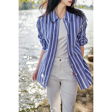 【CY0228249】“洒脱BF风 精品长绒棉”随性都市节奏条纹衬衫