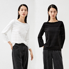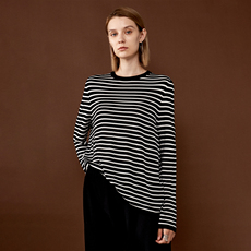 【ZZ0711518】“胶囊衣橱”系列100%真丝条纹针织长袖T恤/上衣