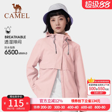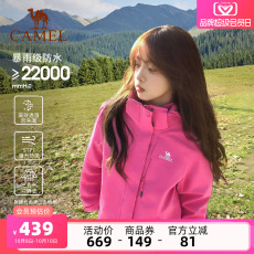 骆驼户外紫玫红冲锋衣女暴雨防水防风外套男三合一两件套登山服装