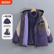 儿童冲锋衣男童三合一可拆卸春秋冬户外两件套中大童加厚防水外套