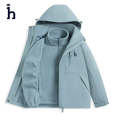 特步童装男童冲锋衣三合一2025新款摇粒绒两件套外套三防户外服男