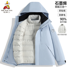 稻草人保暖羽绒内胆冲锋衣男女三合一可拆卸防风防水两件套登山服