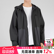 阿迪达斯正品外套男秋冬季薄款防晒衣梭织防风夹克休闲运动皮肤衣