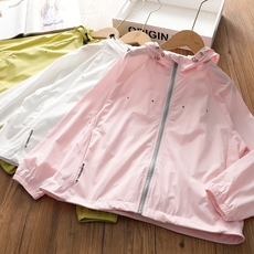 亲子中大童女夏季薄款防晒服儿童户外连帽皮肤衣防紫外线外套开衫