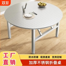 加厚不锈钢可折叠圆桌子户外摆摊长方形家用餐桌出租房吃饭圆台桌