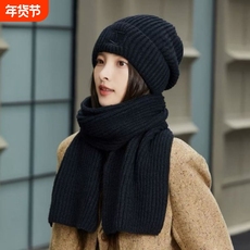 帽子女性秋冬最容易匹配兔子耳朵移动毛绒可爱手套围巾所有在一个
