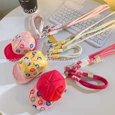 粉M豆帽子包旋转扣编织斜跨长绳短款手环挂绳适用于通用所有手机壳DIY配饰手机挂件钥匙扣耳机零钱袋便携侧背