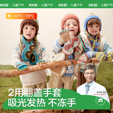 KK树儿童手套半指翻盖宝宝保暖露指男童女孩写字小学生五指秋冬季
