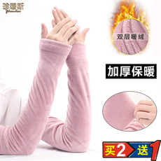 德绒手臂套男女春秋四季款加长护胳膊半指手套袖套保暖防寒假袖子