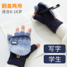 儿童翻盖半指手套女毛绒秋冬保暖可爱小学生加厚儿童学生写字手套