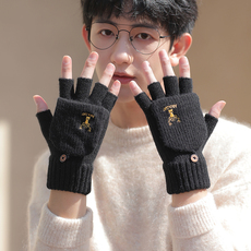 手套男冬天半指情侣学生写字露指韩版秋冬季针织毛线翻盖骑行保暖