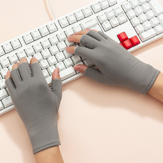 德绒手套女冬季保暖薄款防晒黑美甲骑车半指连指露指尖发热写字