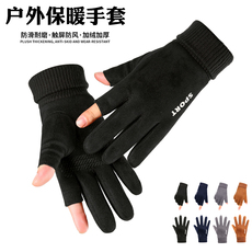 手套男冬季时尚防风加绒保暖触屏户外骑行开车摩托车外卖半指漏指