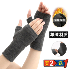 保暖手套半指女发热羊毛蚕丝触屏秋冬骑行露指学生男写字办公打字