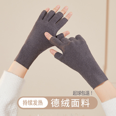 自发热德绒半指手套女秋冬季保暖防寒学生写字办公打字漏指手套