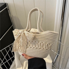 慵懒风手提草编包文艺森系手工编织大容量沙滩度假镂空棉线托特包