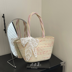 韩国ins手工编织手提小包包女2023新款田园风编织包菜篮子手提包