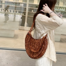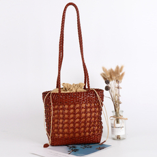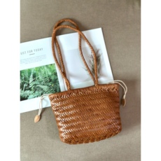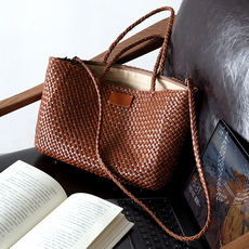 法式简约真皮手工编织女包单肩包头层牛皮植糅皮女包度假风