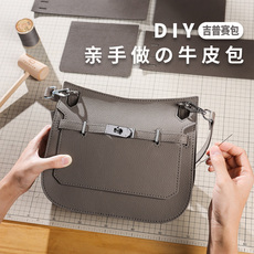 牛皮小号凯利包单肩斜挎包布艺真皮手工包DIY材料全套自制改造包