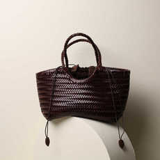 Dragon D同款头层牛皮编织包真皮复古法式纯手工菜篮子包