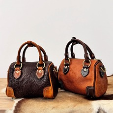 转山复古头层植鞣牛皮包百搭单肩斜挎包保龄球包女士时尚方包