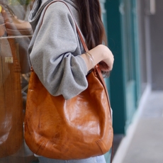 转山进口头层水染植鞣牛皮单肩斜挎休闲真皮手工小众女包