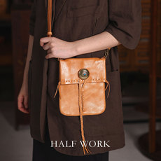 HALFWORK头层牛皮小挎包女真皮复古小众设计手工包简约单肩斜挎包