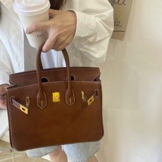新款轻奢手缝蜡线进口头层牛皮中古包福宝羽毛包手提包真皮包包女