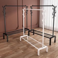 简易衣帽架双杆式晾衣架落地室内移动挂衣架子家用卧室衣服收纳架