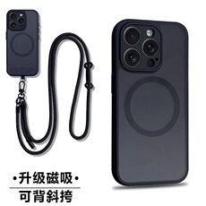 黑色煤球零钱包适用苹果15手机壳iphone16promax保护套13斜挎12pro背带xsmax卡通14可爱xr全包女7p/8plus挂脖