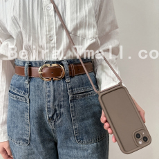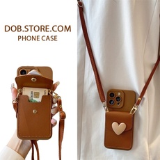 简约奶茶色爱心零钱卡包适用于苹果15promax手机壳适用iPhone16plus背带斜挎14挂绳13全包12软硅胶78PLUS挂脖