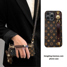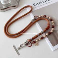卡其棕色三用手机挂绳可调节秋季新款背带棉质手腕绳豹纹串珠链斜挎可背挂脖长款肩带包包相机挂件高级垫片壳
