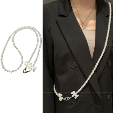 ins风简约时尚轻奢小香风珍珠链子时尚高端女旅游包包套壳结实手机挂绳长款可斜挎背带夹片挂链挂脖旅游防丢