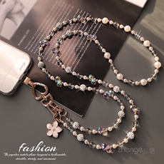 手机挂绳长款斜挎可背轻奢小众珍珠水晶肩带包包小蜜蜂挂链壳结实