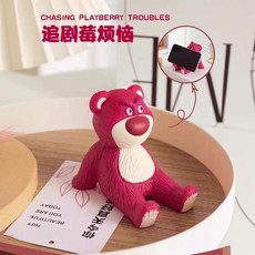 创意草莓熊手机支架桌面可爱粉色小熊摆件平板架办公室手机架好物