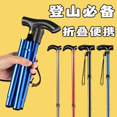 伸缩防滑手杖折叠登山杖超轻便携户外徒步拐杖铝合金弯柄老人拐棍