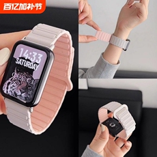 适用小米9pro表带手环Pro升级硅胶磁吸手表腕带小米8磁吸硅胶NFC运动红米WATCH5三株撞色红米4代夏天运动腕带