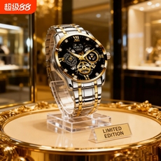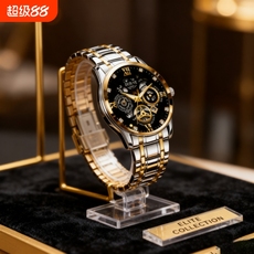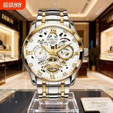 手表男全自动非机械表钢带男款商务防水石英腕表正品名牌镂空男士