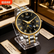正品名牌钢带商务防水石英腕表高级感男士男款手表全自动非机械表