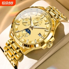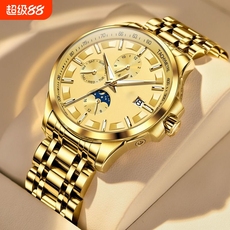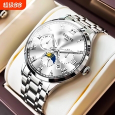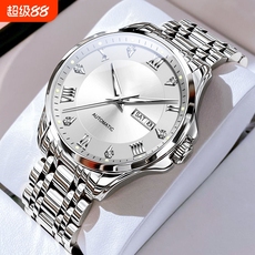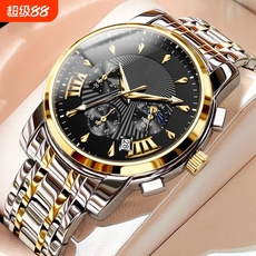 男士手表男正品名牌全自动非机械表钢带男款商务防水石英腕表老人